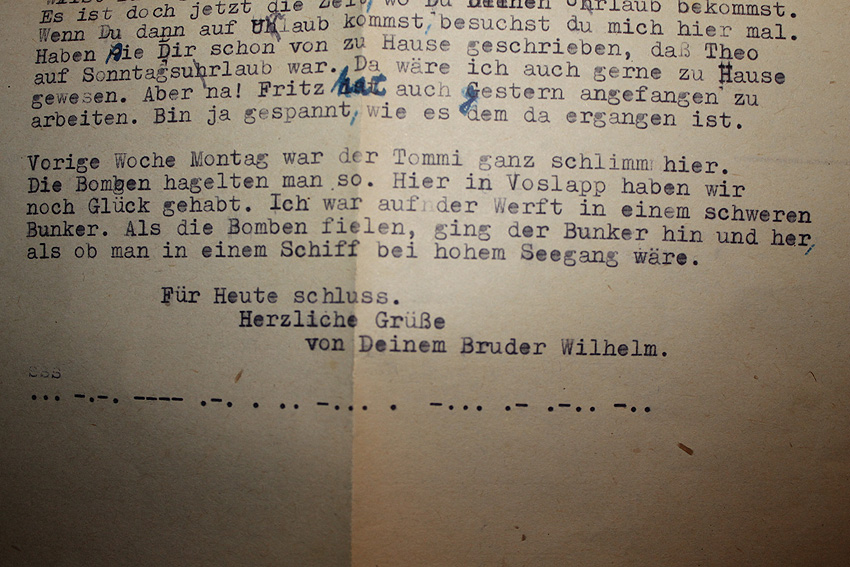 Interessant die Morsezeichen unten: "Schreibe bald".