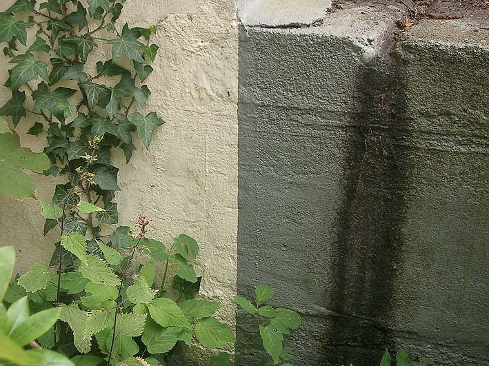 Hier ist zu erkennen, dass kein Materialverbund zwischen Bunker und Gebäude besteht. Dies beweist des weiteren, dass das Gebäude erst nachträglich gebaut wurde...