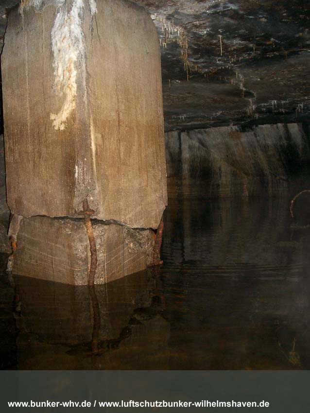 Die Spannbetonträger waren ursprünglich höchstwahrscheinlich Rammpfähle für Uferbefestigungen im Hafenbereich. An der Südwestseite der Bunkerdecke fehlen die Träger. Sie wurden in der Nachkriegszeit entfernt. Dort ist die Ursprungsdecke des Tiefbunkers erkennbar. Das Bauwerk steht mittlerweile komplett unter Wasser.