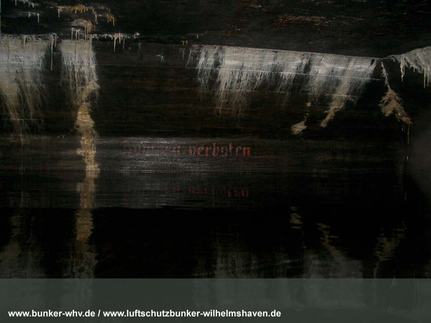 Warum wurde gerade hier auf der Wiesbadenbrücke ein Tiefbunker errichtet? Nicht nur, dass Wilhelmshaven ohnehin einen hohen Grundwasserspiegel hat. Gerade hier drückt das Wasser des Hafens von zwei, ja sogar wohl drei bzw. vier Seiten besonders an die Bunkerwände. Der Bau kann nur erklärbar sein durch zwei Punkte. 1. Tarnung, da im Krieg ohnehin nur spärliche oberirdische Bebauung auf der Wiesbadenbrücke existierte. 2. Freies Schussfeld für mittlere Flak, die nach Hinweisen zu Zeit des Bunkerbaues hier stationiert war, später dann an einen anderen Standort verbracht wurde.