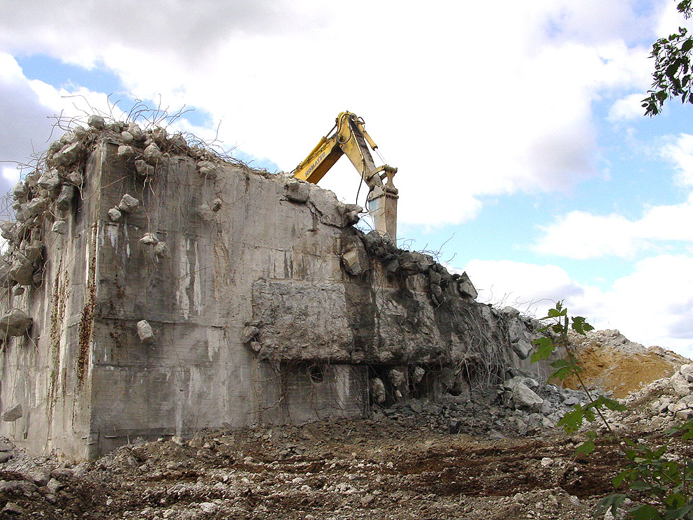 In der letzten Juliwoche 2007 begann ohne vorherige Ankündigung nun der geplante Abriss des T 750. Innerhalb weniger Wochen wird das Bauwerk unter anderem der projektierten Errichtung eines Famila-Marktes weichen. Eine "Rampe" aus Sand für den schweren Bagger, welcher von oben beginnend den Bunker Schritt für Schritt abträgt, wurde angeböscht. Man sieht, dass in der heutigen Zeit auch eine 3,75 Meter-Stahlbetonabschlussdecke einem modernen Abbruchwerkzeug nur unwesentlichen Widerstand entgegenzusetzen vermag. Wir berichten weiter über dieses Ereignis. Hier nun die ersten Fotos von J.Schwarzenberg, welcher vor Ort den Abriss für die Nachwelt festhält: