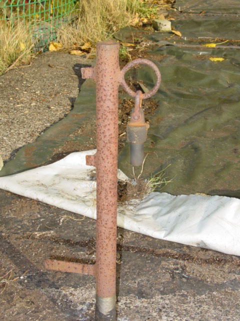 Unten links auf dem Bild ist eines der beiden Schutzbauwerke und darüber das bekannte Lüftungsschachtmuster der Bunkerseitenwand erkennbar.