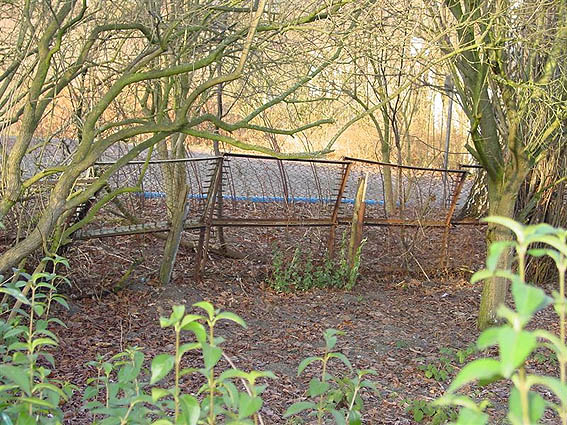 In der Nähe des Hochbunkers sind diese Behelfszäune aus Bettgestellen, welche aus dem Bunker stammen, anzufinden: