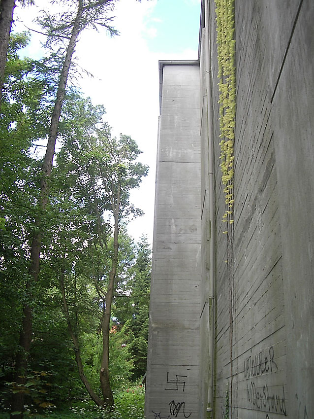 Nachtrag 05.05.10: In diesen Tagen wird einer der beiden ehemaligen Entfestigungsschnitte an der Nordwand des Bunkers (vor dem Bauwerk stehend der rechte Schnitt) wieder geöffnet. Der Bunker, der nach dem Krieg entfestigt wurde, ist zu Zeiten des Kalten Krieges wieder verschlossen worden, um ihn für den Zivilschutz herzurichten. Nun erfolgt im Bereich des einen von zwei ehemaligen Demilitarisierungsschnitten an der Nordwand sozusagen die zweite Entfestigung. Eine uns bisher an keinem anderen Bunker in Deutschland bekannte neuerliche bauliche Veränderung in der Art und Weise. Die Maßnahme erfolgt im Zusammenhang mit der erweiterten Nutzung des Bunkers als Computermuseum. Zwei Fotos der Bauarbeiten mit freundlicher Bereitstellung durch die FH: