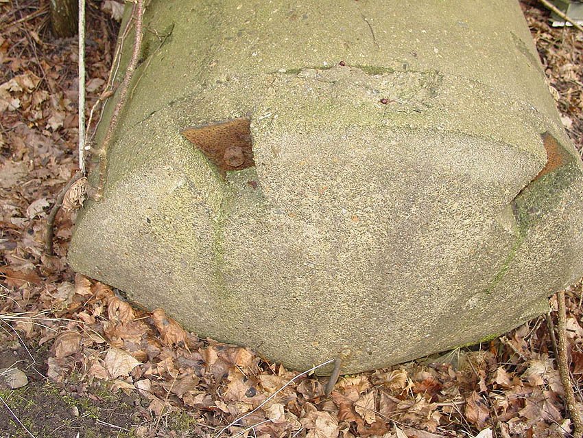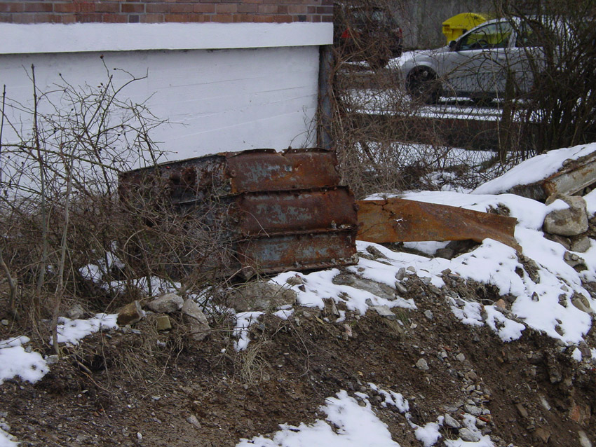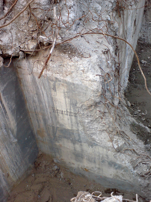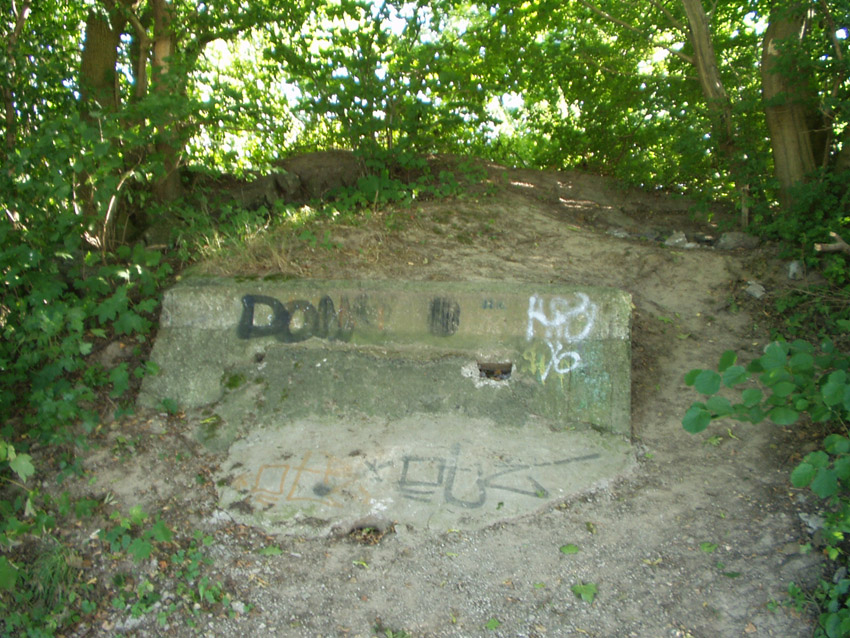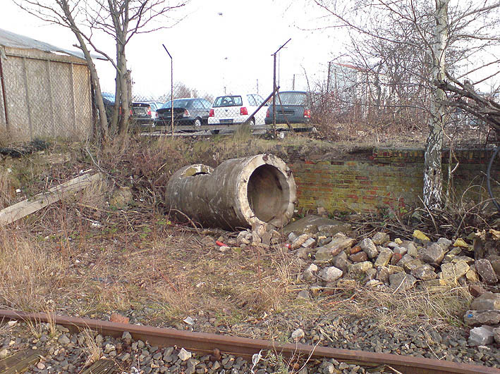 Hier zu sehen eine weitere Zelle der Bauart "DYWIDAG", teilzerstört und umgekippt. Sie befindet sich an der Kaistraße / Schwedendamm an den Gleisen: