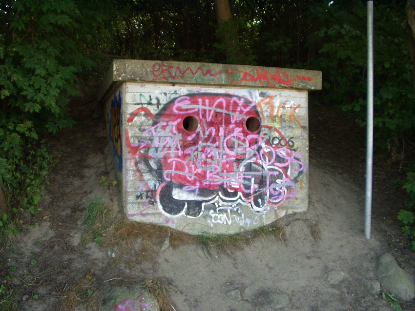 Wie in vielen anderen ehemaligen luftgefährdeten Orten ersten Grades gibt es auch in Kiel heute nur noch vereinzelt Splitterschutzzellen. Hier zu sehen vier Zellen der Bauart "DYWIDAG" (eine der Zellen wurde 2008 zum "Flandernbunker" umgesetzt, siehe vorherige Seite):