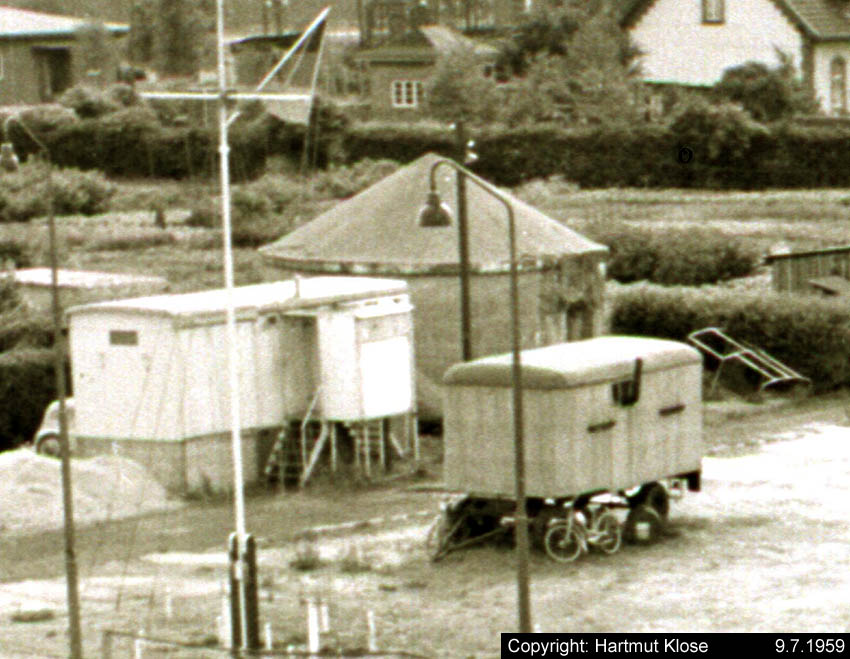 Aufnahmen des Kleinbunkers am Lönsweg. Dieser Bunker war für das Rundsuchgerät "Jagdschloß" als Sockel geplant. Das Gerät wurde allerdings nie installiert. Im April 2003 wurde der nach dem Krieg gesprengte Bunker aus (fragwürdigen) Sicherheitsgründen zerkleinert und mit Erdreich überdeckt. Aufnahmen aus den Jahren 1968 und 2000.