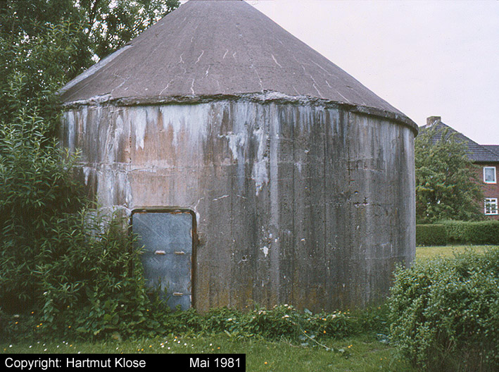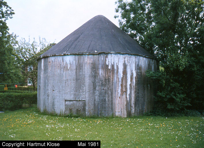 Aufnahme des kleinen Rundturmes Holsteinstraße in der Stadtparkkolonie. Auch dieser Bunker ist noch immer vorhanden. Aufnahme aus dem Jahre 1972.