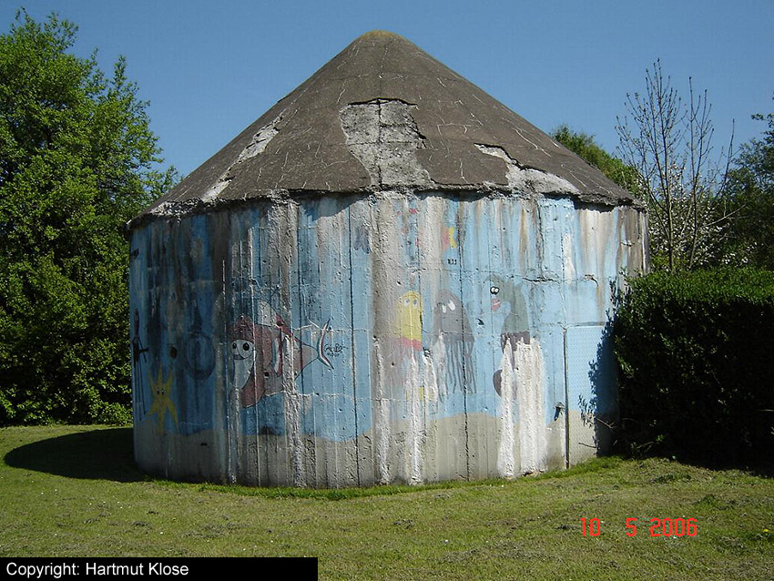 Aufnahmen des kleinen Rundturmes in Siebethsburg. Dieser Bunker ist ebenfalls noch vorhanden. Aufnahmen aus den Jahren 1981 und 2006.