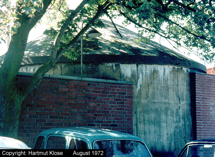 Aufnahme des kleinen Rundturmes an der Hafenschule Werftstraße. Der Bunker ist vorhanden. Aufnahme aus dem Jahre 1972.