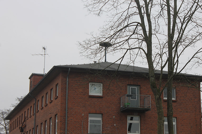 85. Kein Foto: Nachkriegs-Sirene (Einheitssirene E57) auf dem Dach des Gebäudes Preußenstraße 4 / 4a / 6 / Fedderwardergroden / eventuell Originalstandort von Ursprungssirene / wohl 1980er Jahre Entfernt