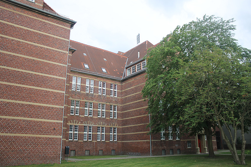 Hinweis: Eine bekannte Wilhelmshaven-Postkarte aus den 1970er Jahren zeigt die Schule aus Südwesten vom Neuengrodener Weg aus. Die Sirene ist dort deshalb nicht ersichtlich, weil sie aus der Perspekive ganz knapp hinter dem Dachbereich des Schulobservatoriums verborgen liegt. Die Sirene war zu der Zeit aber auf alle Fälle noch vorhanden.