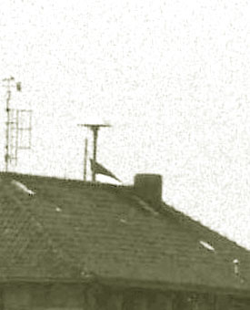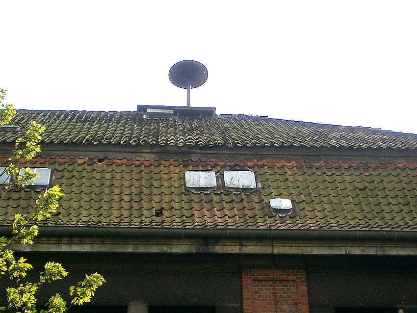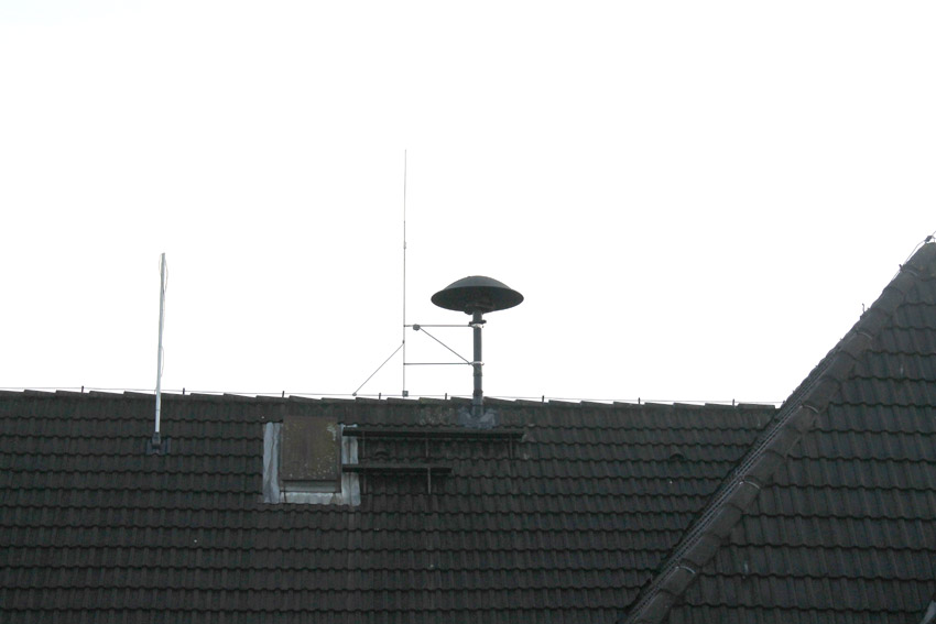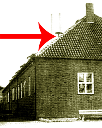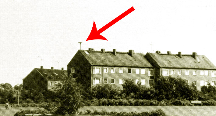 77. Kein Foto: Nachkriegs-Sirene (Einheitssirene E57) auf dem Dach des Gebäudes der ehemaligen Marine-Nachrichtenstelle in Langewerth / eventuell Originalstandort von Ursprungssirene / wohl 1980er Jahre Entfernt