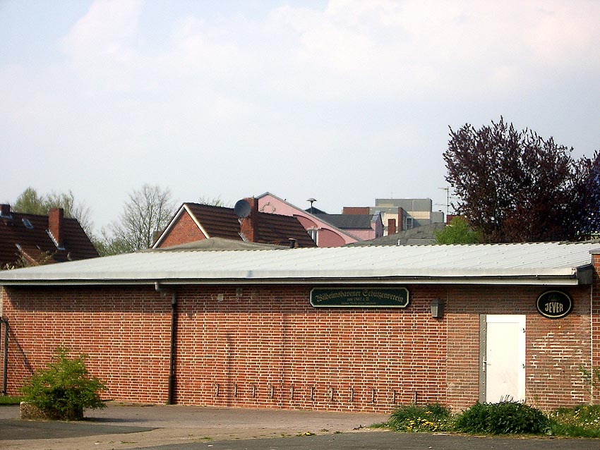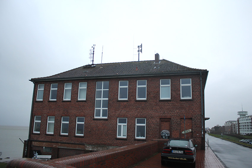 Interessant - Hier war der Wilhelmshavener Zivilschutz: Am Behelfsbunker Banter Weg / Peterstraße war im dortigen Gebäude bis kurz nach der Jahrtausendwende der Wilhelmshavener Zivilschutz / Katastrophenschutz ansässig. Der nahe Hochbunker Genossenschaftsstraße wurde zeitweise für Übungen genutzt. Bemerkenswert ist die Haube auf dem Schornstein. Eventuell stammt diese von einer Sirene (jedoch wohl nicht vom Typ E57 / diese hier sieht kleiner aus / eventuell Haube einer Zweifachsirene). Das Gebäude samt Behelfs-Schutzbau wurde 2005 abgerissen. Heute ist hier ein Supermarkt samt Parkplatz.
