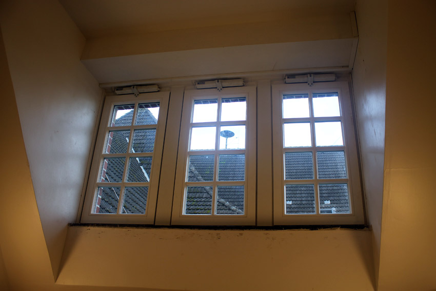 39. Nachkriegs-Sirene (Einheitssirene E57) auf dem Dach der Oldeoogeschule (heute katholische Grundschule St. Martin) an der Oldeoogestraße / eventuell Originalstandort von Ursprungssirene Vorhanden