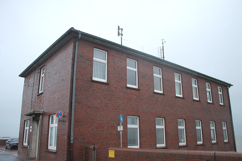 5. Nachkriegs-Sirene (Einheitssirene E57) auf dem Dach eines Gebäudes des ehemaligen Seefliegerhorstes am Fliegerdeich (später Wasserwirtschaftsamtstelle) / eventuell Originalstandort von Ursprungssirene Entfernt