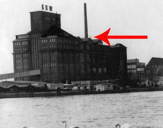 109. Kein Foto: Sirene aus dem WK 2 (Zweifachsirene) auf dem Dach eines Wachgebäudes im Marine-Artilleriedepot (Munitionsdepot) / Bereich an der heutigen Planckstraße / Pförtnergebäude des späteren Nordwestdeutschen Fahrzeugbaues (NWF) / Originalstandort / wohl 1960er Jahre Entfernt