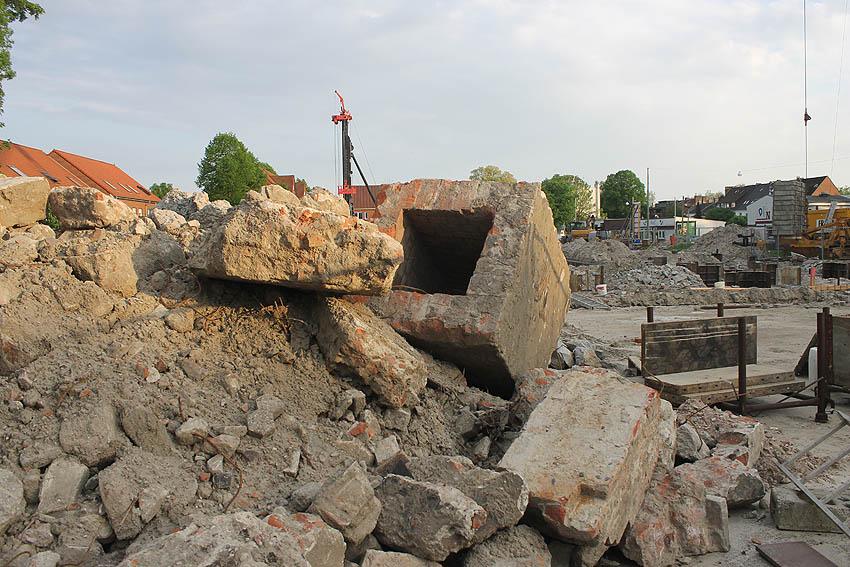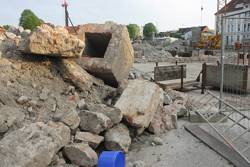 Im Bereich der ehemaligen Kasernenanlage Gökerstraße wurde Ende 2017 bis ins Frühjahr 2018 ein neuzeitiges Supermarktgebäude mit Anliegerbau abgerissen. Dabei traten bei Ausschachtungsarbeiten auch Trümmer ans Tageslicht, die von den seinerzeitigen historischen Kasernenbauten stammen dürften. Ist das ersichtliche quadratische Objekt eventuell eine Verbunkerung damaliger Luftschutzkeller (eventuell ein Notausstieg...) gewesen?