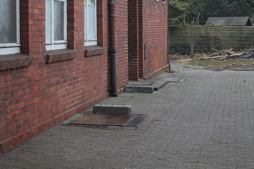 An der Ostwandseite der ehemaligen Grundschule Kirchreihe befinden sich (noch / Stand März 2018) zwei Stahlklappen auf dem Boden. Darunter werden zwei Kellerschächte sein. Ein Keller ist hier definitiv vorhanden. War dies ein LS-Keller und standen die Klappen damit im Zusammenhang?