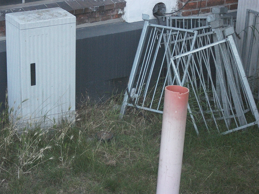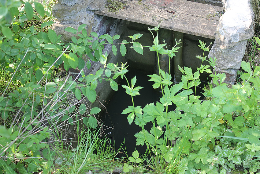 Westlich des ehemaligen KSW-Hauptgebäudes befindet sich dieses Objekt mit Stahlrahmen und rundem Schacht. War dies ein Notausstieg einer LS-Anlage? Anliegend befand sich ehemals ein runder Tank.