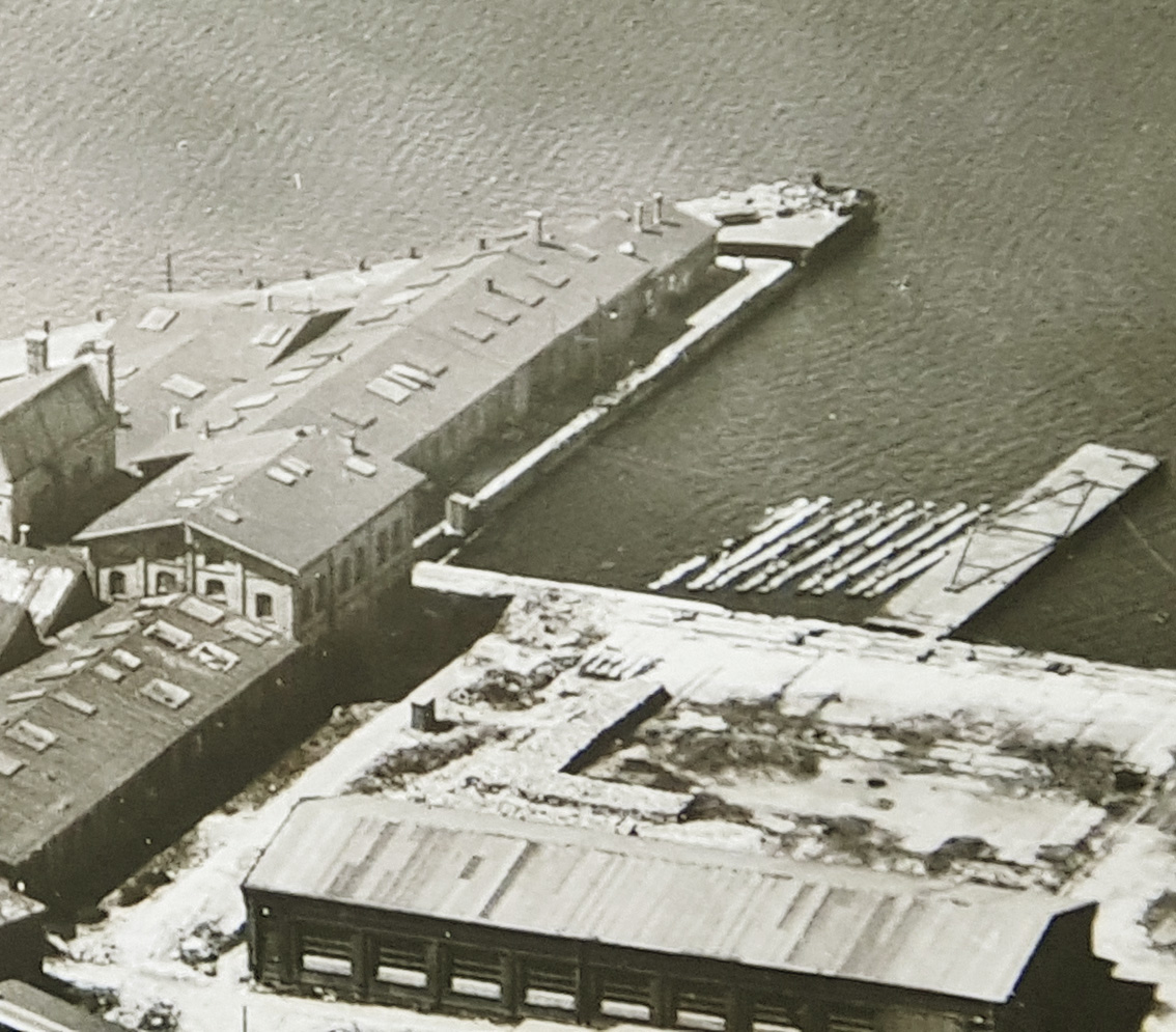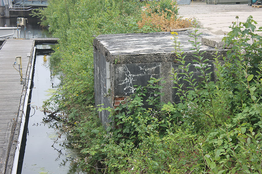 Beide Objekte lagen bis Kriegsende kurz hinter der damaligen Kaimauer / Spundwand auf Landseite und waren / sind als helle Punkte auf Luftbildern zu erkennen... War auch dies ein Klein(st)bunker?