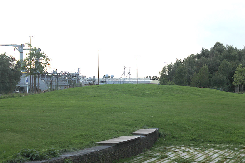 Östlich der Flensburger Straße / nördlich des Marinearsenals befindet sich dieser neuzeitige Rodelberg. Was ist darunter? Trümmerschutt? Eventuell sogar eine oder mehrere "entsorgte" Splitterschutzzellen der früheren Bauwerft?