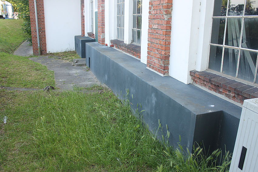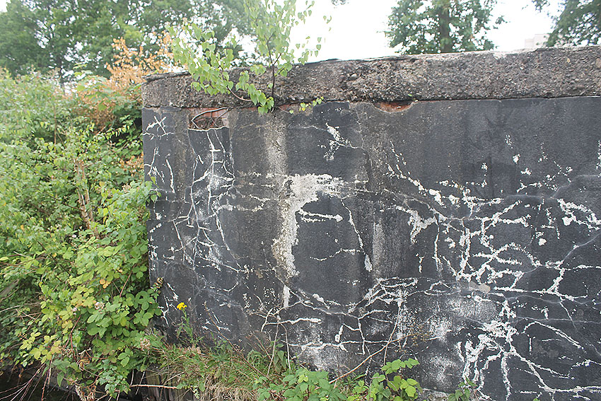 Die südliche gelegene Betonwand und auch das im oberen Bild erkennbare, damit auf einer Flucht liegende Konstrukt werden aus Nachkriegszeiten stammen. Am heutigen Kulturzentrum "Pumpwerk" / Nord- und Ostseite (eventuell auch Süd- und Westseite / noch nicht gefunden) befinden sich diese massiven Strukturen. Handelt es sich hierbei zumindest teilweise um LS-spezifische Verbunkerungen der alten Pumpwerksanlagen aus Zeiten vor oder während des Zweiten Weltkrieges?