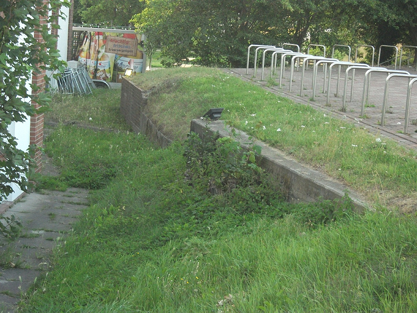 In Jever befindet sich am Bahnhofsgebäude gleisseitig dieser Kellerabgang. Eventuell ein ehemaliger Splitterschutzeingang zu einem Luftschutzkeller? Wer hat Informationen?