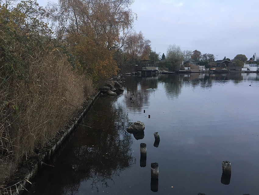 Und auch einige Meter westlich, direkt am Südwestende des heutigen Banter Sees liegen Trümmer unter Wasser: