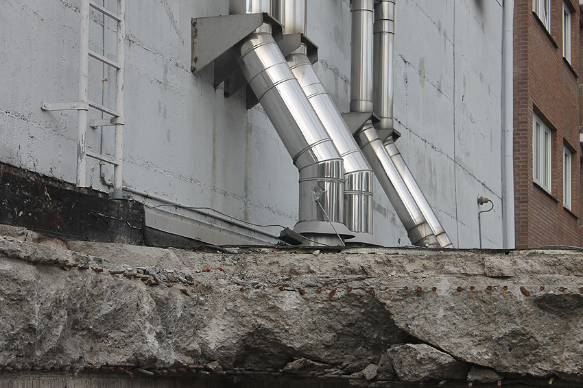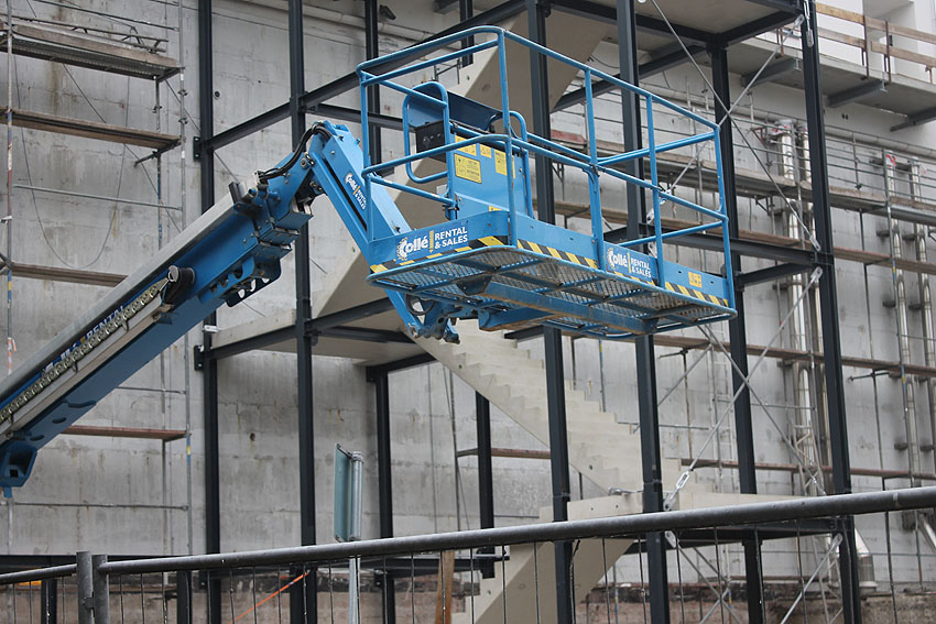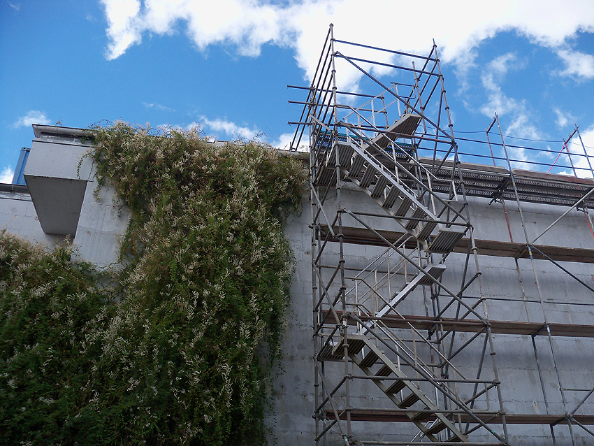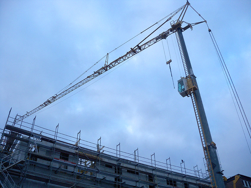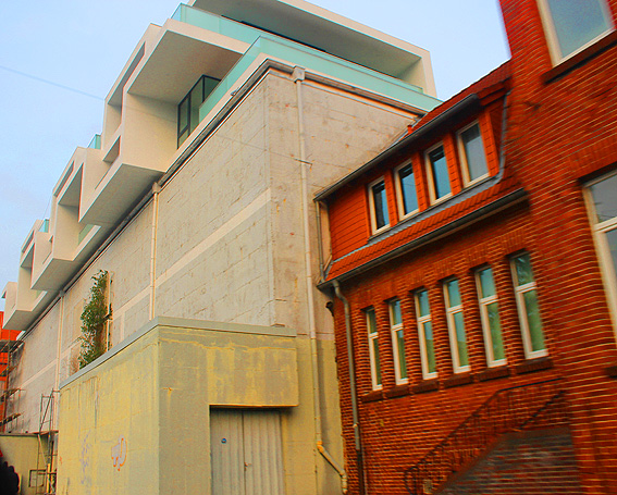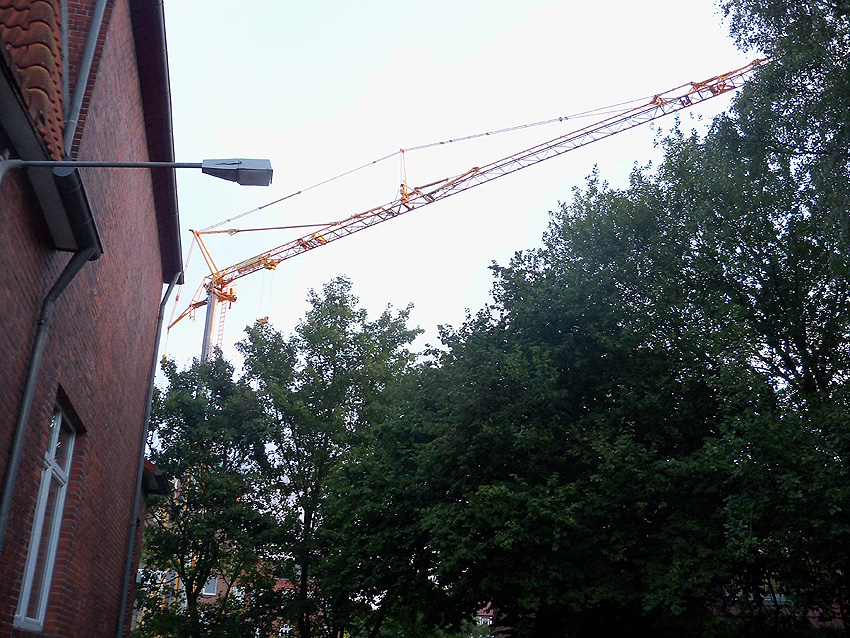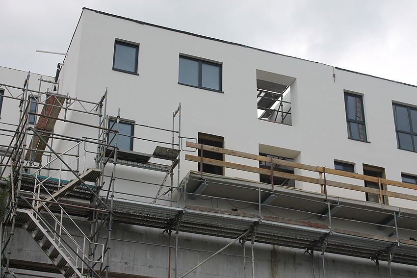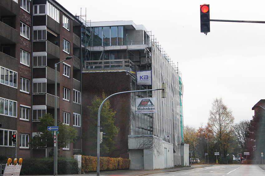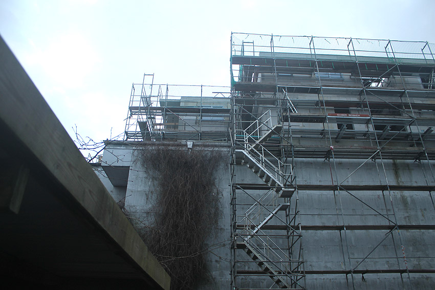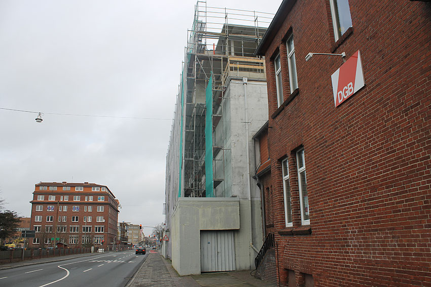 Am ehemaligen OP-Bunker Virchowstraße wird nun an der rückwärtigen Ostwand der Treppenhaus- und Fahrstuhlanbau für die aufgebauten Wohnungen errichtet. Wo genau der Fahrstuhl installiert wird, ist uns allerdings noch etwas unklar. Die Arbeiten gehen stetig weiter ihrer Vollendung entgegen.