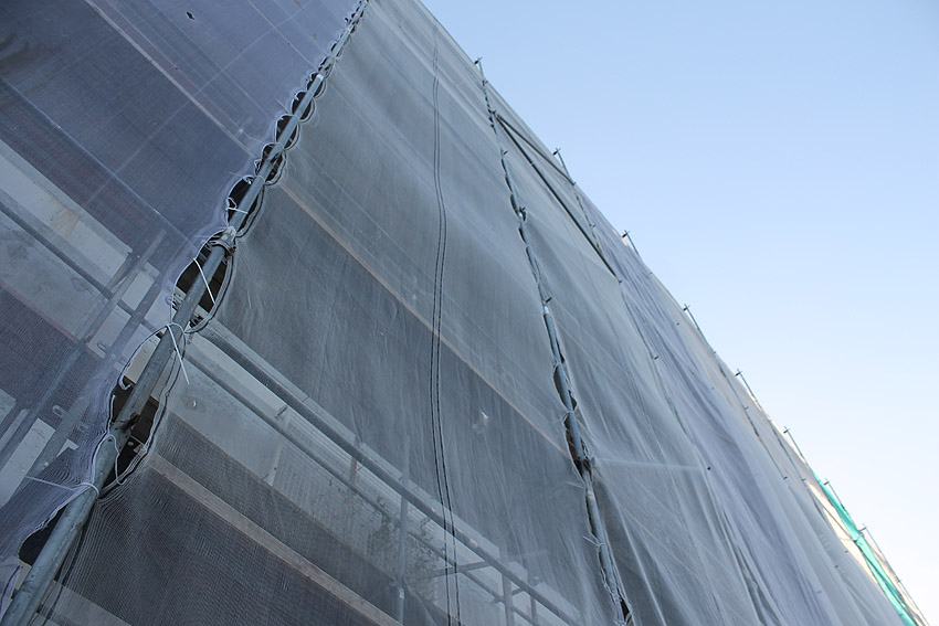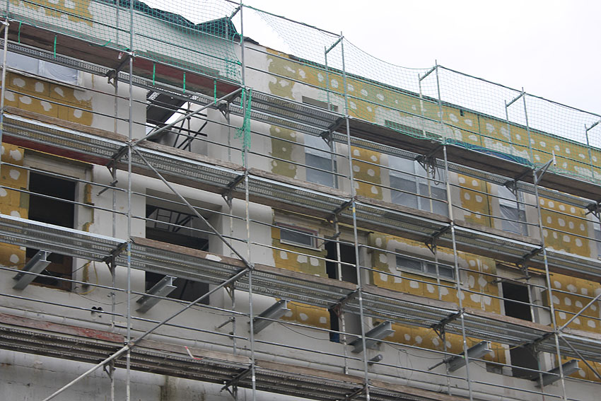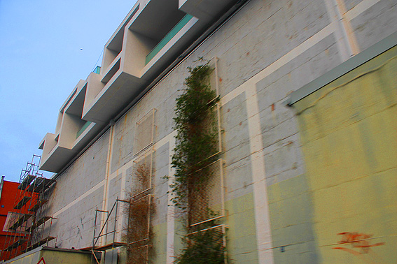 Das letzte Baugerüst an der Virchowstraße wurde von der Bunkerwand entfernt. So präsentiert sich das überbaute Weltkriegsrelikt nun dem Betrachter: