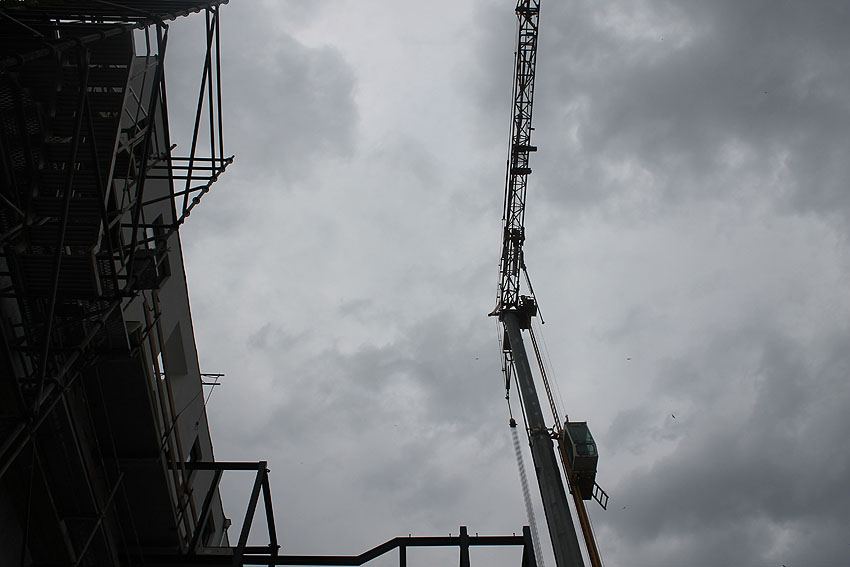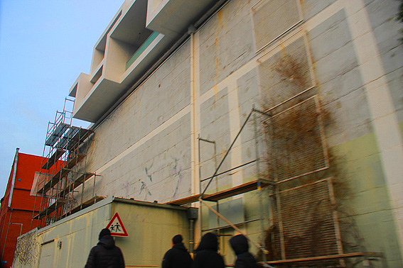 So sieht es mittlerweile am Bunker aus. Auf dem Dach sind erste Neubaustrukturen zu erkennen.