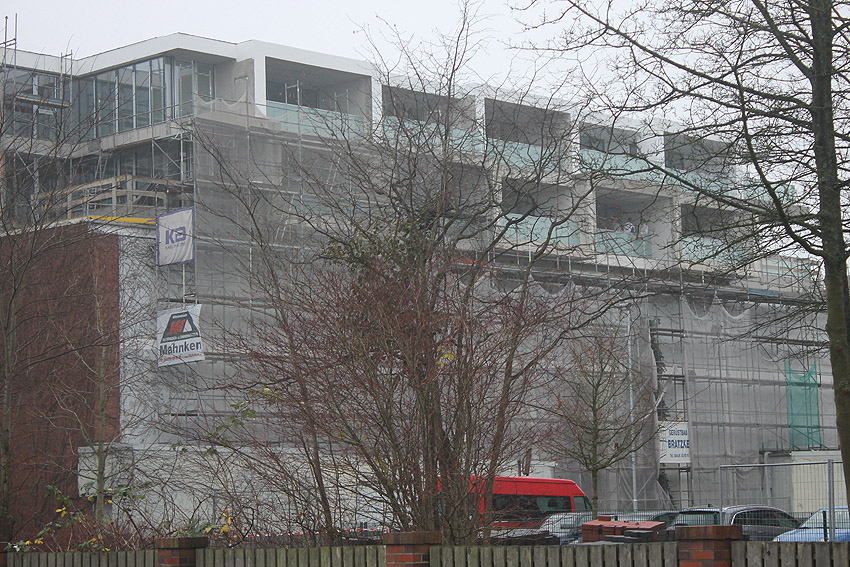 Am Bunker Virchowstraße ist nun zumindest an der östlichen Rückseite die Struktur der aufgebauten Wohnungen gut zu erkennen. Die Arbeiten gehen langsam endlich ihrer Vollendung entgegen.