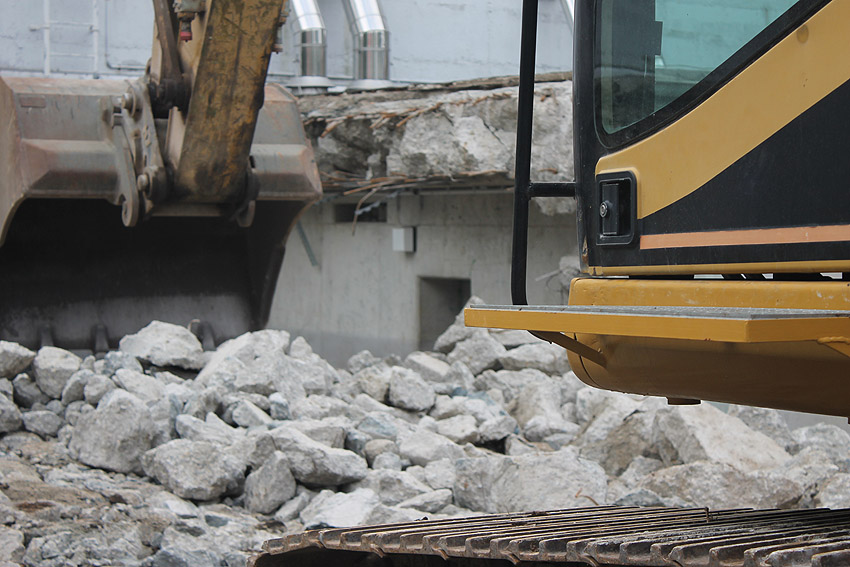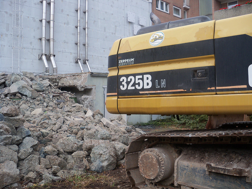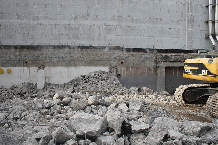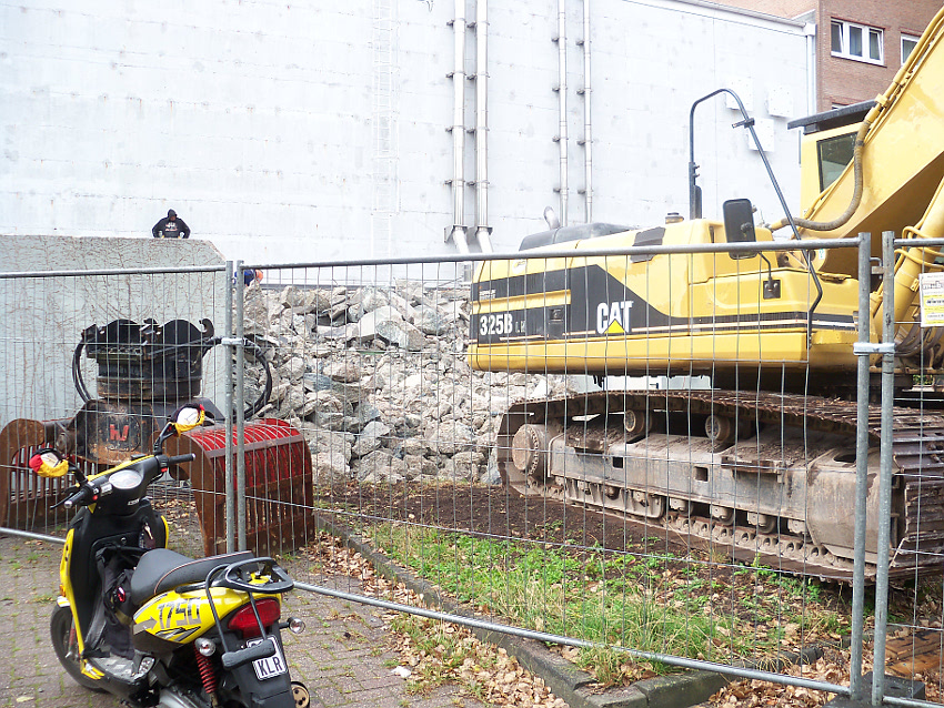 Der Trümmerschutt wurde großteilig entfernt. Die restlichen Außenwandreste des ehemaligen Vorbaubereiches Mitte / Süd wurden fast vollständig abgetragen. Wir berichten weiter.
