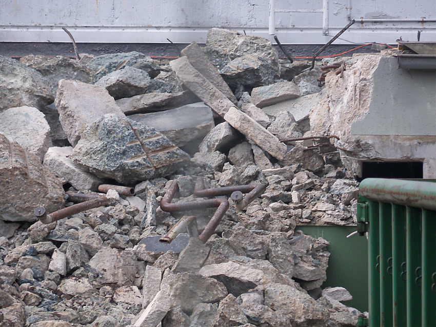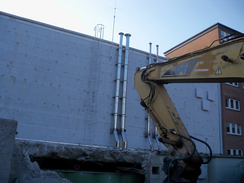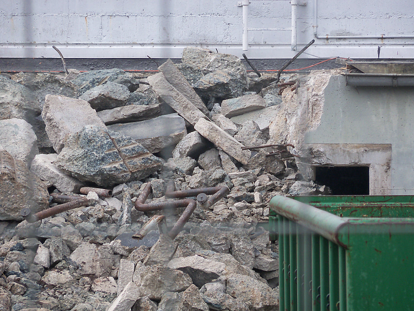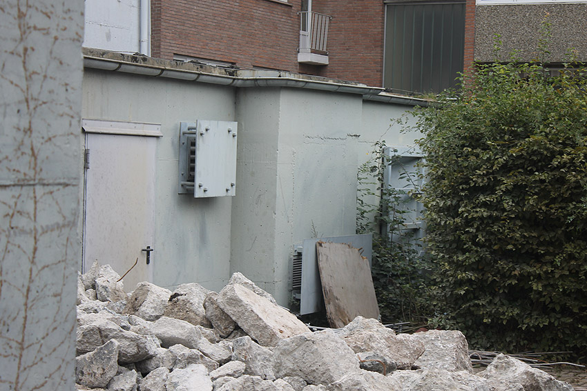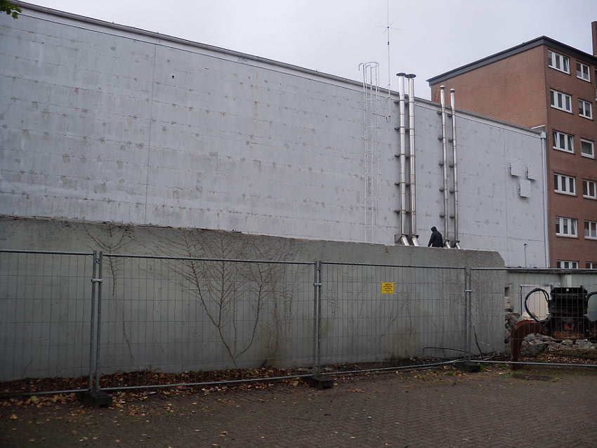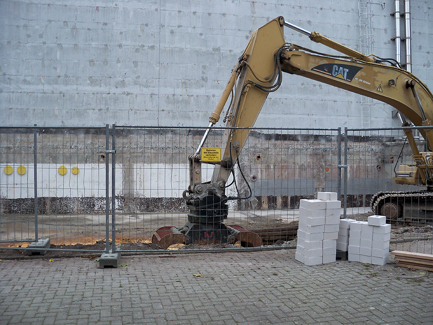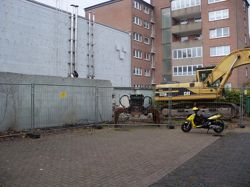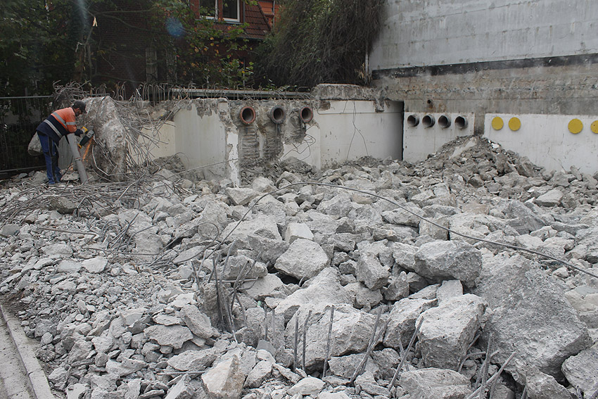 Am ehemaligen OP-Hochbunker Virchowstraße rücken die Abrissarbeiten des Vorbaues aus Nachkriegszeiten dem Ende entgegen. Der Nordbereich des Vorbaues bleibt erhalten. Wir berichten weiter. Wir haben nachgesehen: Der Originalvorbau schloß genau an der Nordwand des Nachkriegsvorbaues ab, besaß die gleiche Höhe wie dieser und fand seine Südbegrenzung genau dort, wo der jetzt erhalten bleibende Nachkriegsvorbaurest seine Südbegrenzung zeigt.