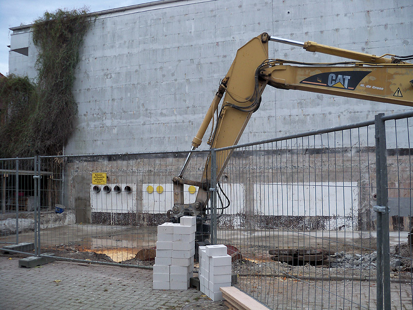 Der Abriss wurde in den vergangenen Tagen weiter fortgesetzt. Der Vorbaubereich Süd und Mitte existiert praktisch nur noch im Bereich der Außenwände - und auch das nur noch teilweise. Laut Aussage eines Arbeiters wird der Nordbereich des Nachkriegsvorbaues allerdings nicht abgerissen. Wir bleiben dran!