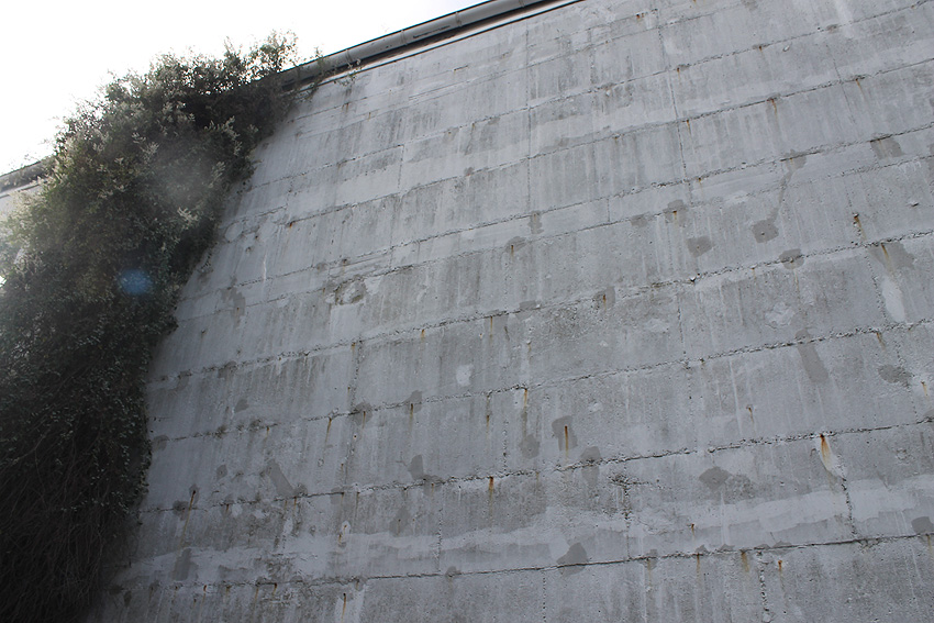 Der ursprüngliche Anbau wurde seinerzeit abgebrochen. Auf dem historischen Bild an der gesamten Bunkerwand außerdem zu sehen wenige Reste der rotfarbenen Tarnung: