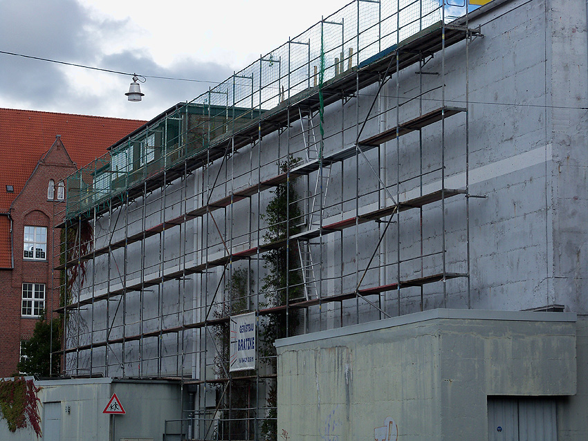 Der Bunker ist vorne wie hinten noch immer eingerüstet... Man darf gespannt sein, wann endlich die Arbeiten vollendet sind.