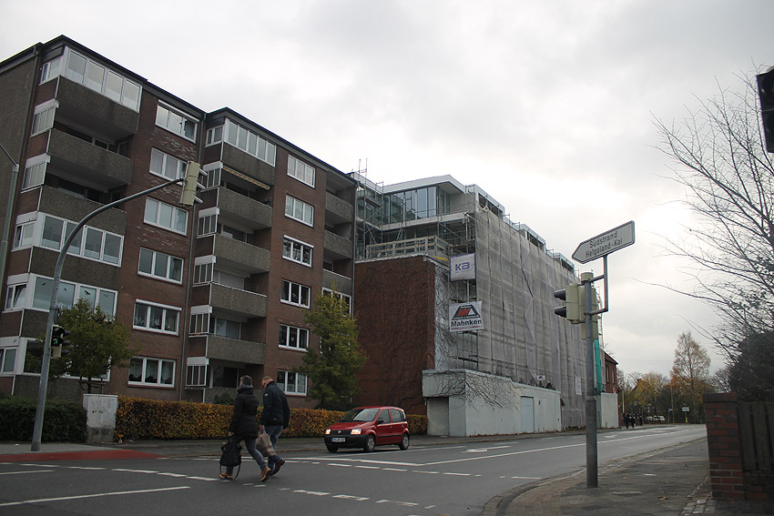 Die Umgestaltung des ehemaligen Operationshochbunkers an der Virchowstraße ist abgeschlossen. Die ersten Bewohner sind eingezogen. Demnächst verschwinden die letzten Baugerüste. Auch ein Aufzug wurde installiert. Dieses Objekt steht im krassen Gegensatz zur Brache schräg gegenüber, wo einmal das "Outlet..." entstehen soll(te?). Der Bunker ist so gut wie unangetastet und bietet nun ein solides Fundament für Wohnungen mit bestem Ausblick. Im Bunker könnte übrigens gut ein Museum zum Thema "Kalter Krieg" installiert werden. Er wurde bekanntlich als Hilfskrankenhaus hergerichtet.
