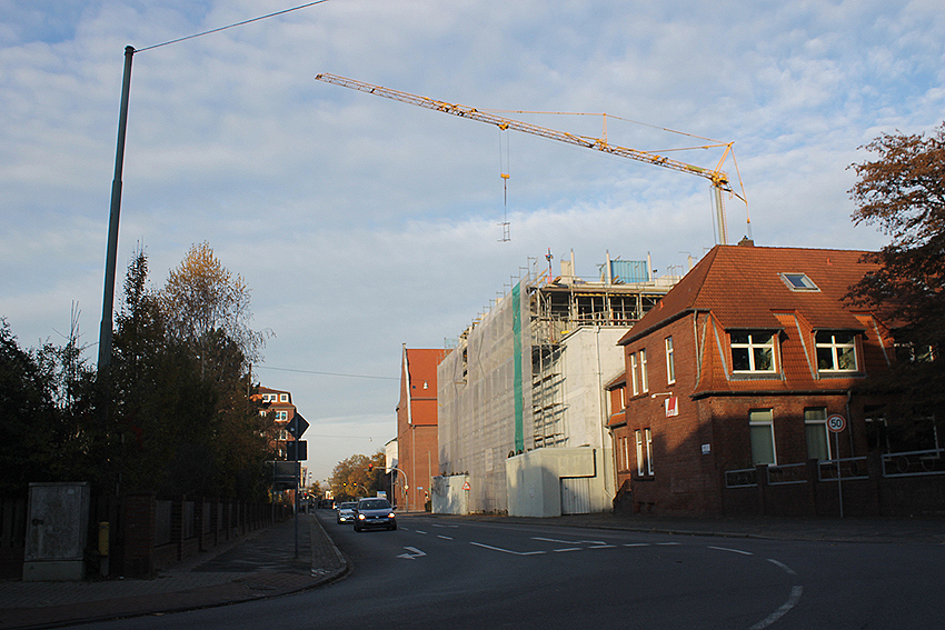 Am Hochbunker Virchowstraße sieht die Szenerie von Nordwesten heute derart aus. Wann dort die Fertigstellung des Überbaues erfolgt, ist noch immer unklar.