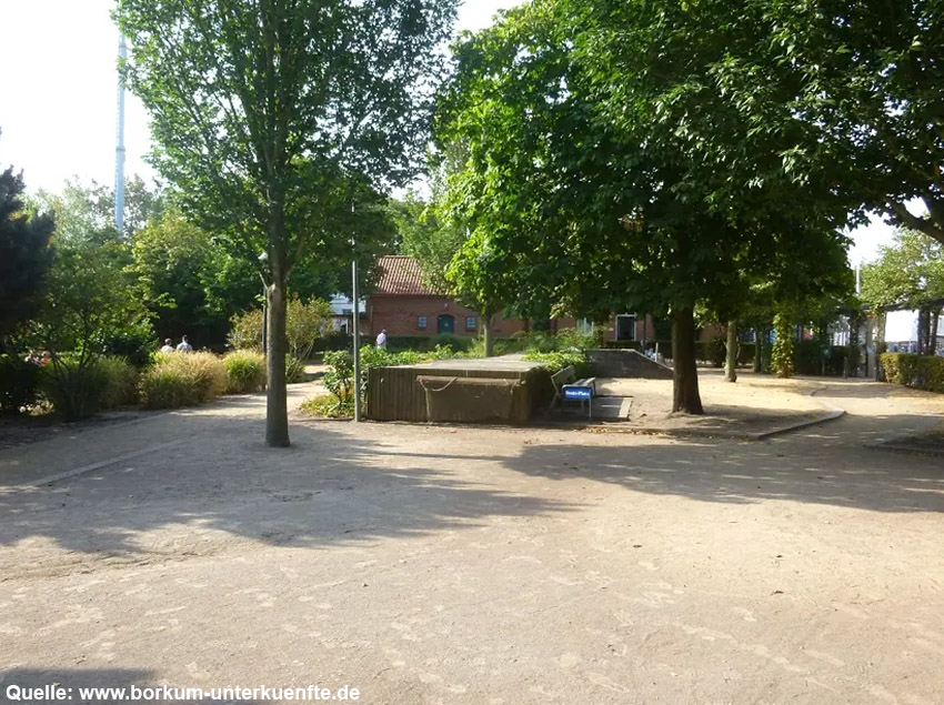 Betonierter Deckungsgraben auf dem Margarethe-Giese-Platz gegenüber vom Bahnhof Borkum