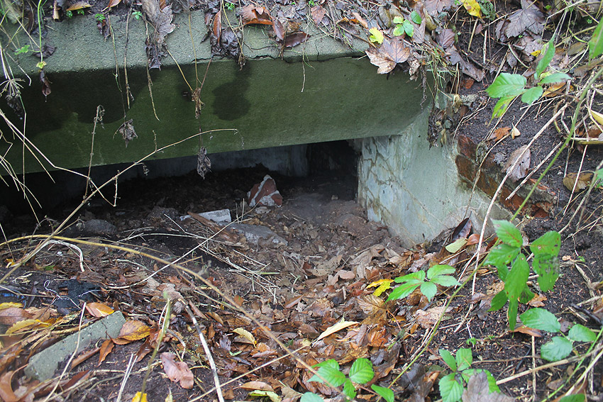 Dies ist der noch einigermaßen gut sichtbare Osteingang. Der Westeingang wurde nach dem Krieg bereits früh komplett zugeschüttet und überschüttet.