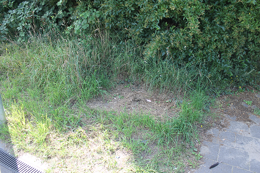 Heute ist das Gelände nicht einsehbar. Es ist keinerlei Struktur erkennbar, lediglich die massive längliche Erdaufschüttung, unter der sich die Röhre befindet.