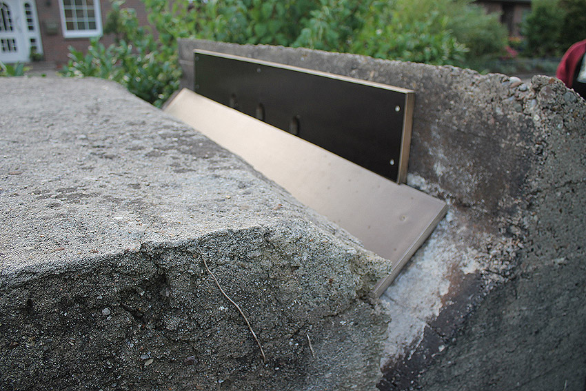 Hier am Westeingang ist keine Einflugöffnung für Fledermäuse eingebracht. Eventuell ist der Abgang hinter dem Zugang (teilweise?) mit Schutt verschüttet.