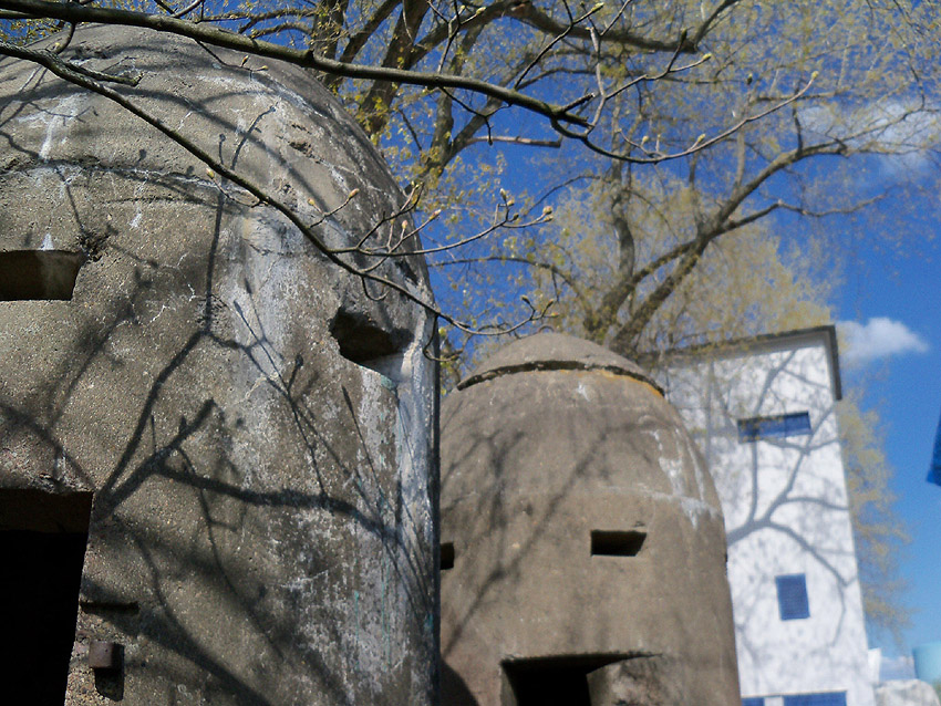 Zwei von ehemals drei abgelagerten Westermann-Splitterschutzzellen am Braunschweiger Hafen (die dritte Zelle war ohne Fundament):