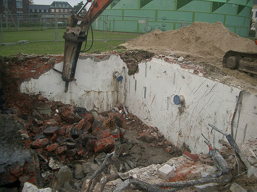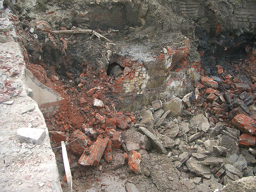 Hier zu sehen eine Betonverstärkung unter dem Mauerwerk und ein verblendeter Lüftungsschacht.