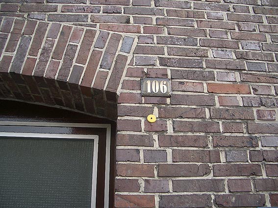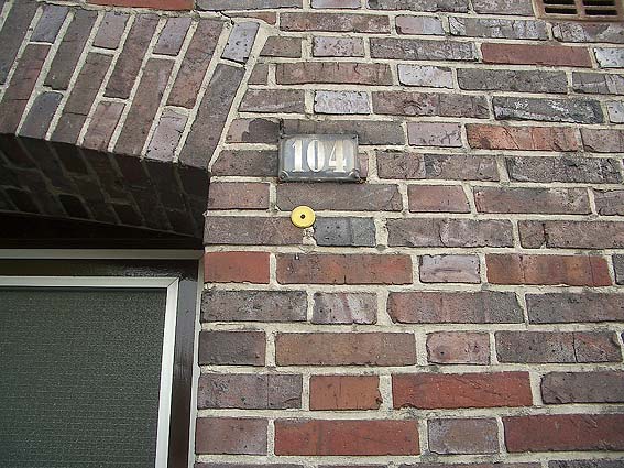 An der Wand des Gebäudes Bremer Straße 102 befindet sich dieser Hinweis mit Pfeil: