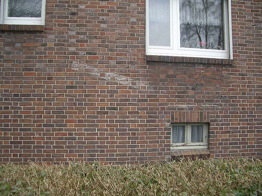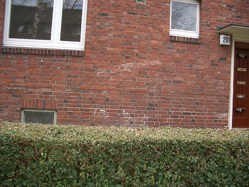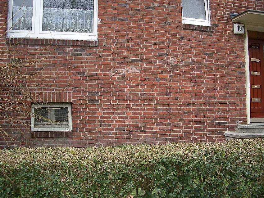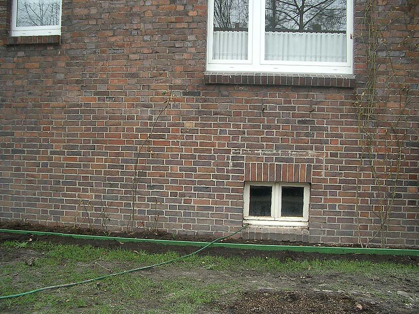 Auch vor den nachfolgend abgebildeten ehemaligen LS-Kellerfenstern waren wie vor diversen anderen Kellerfenstern im Stadtgebiet Betonblöcke gelagert worden. Sie sollten Schutz vor Detonationsdruck bieten. Auch auf den nachfolgenden Bildern sind Reste der Putzfugendichtung teilweise noch gut zu erkennen...