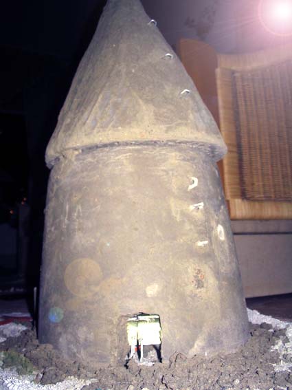 das Modell am gleichen Standort in starkem Schneefall aus...