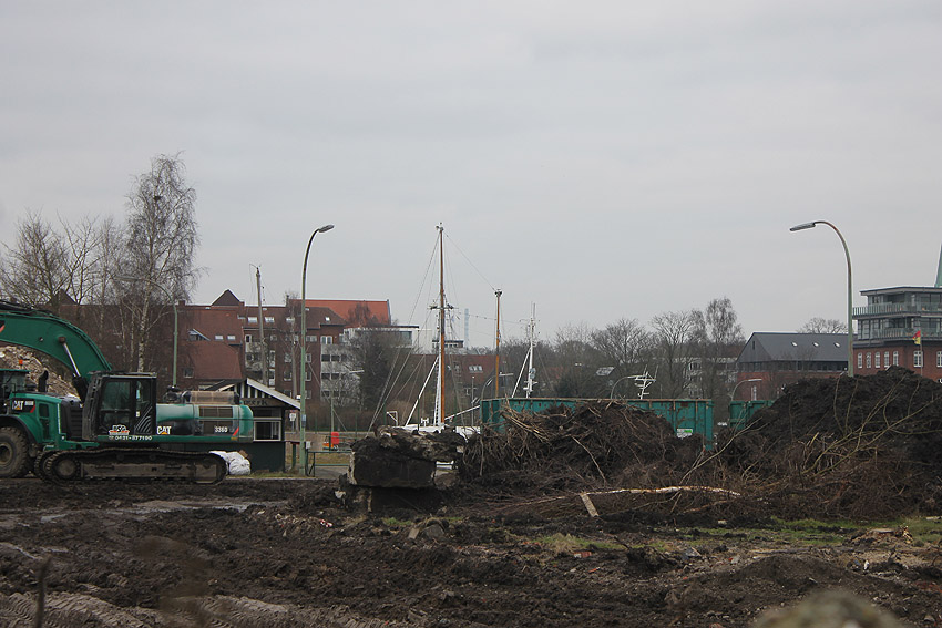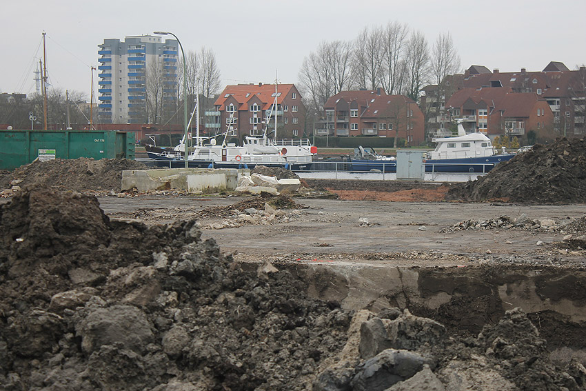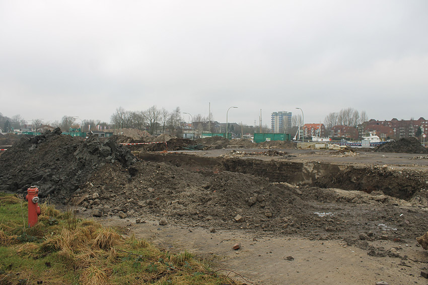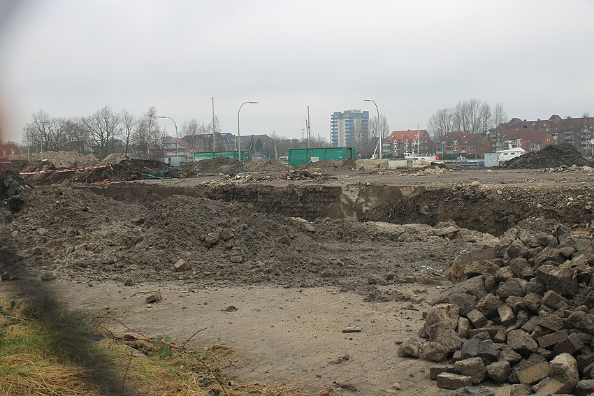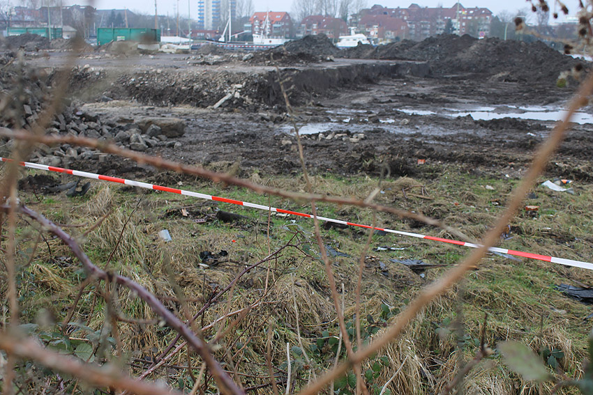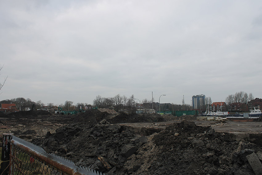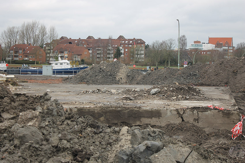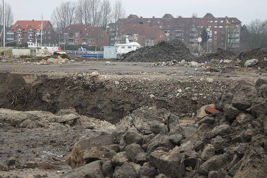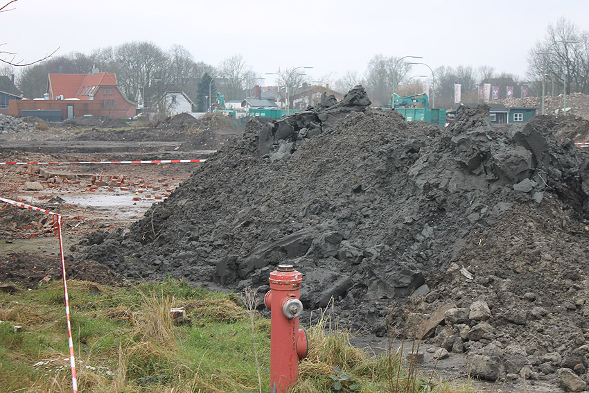 Überall auf dem Gelände häufen sich nun ans Tageslicht beförderte massive Betontrümmer und Quader (eventuell Gewichte für Bojenfestmachungen auf See). Der Tiefbunker wurde weiter freigelegt. Momentan ist der Kampfmittelräumdienst vor Ort. In Kürze dürfte eventuell damit begonnen werden, den komplett unter Wasser stehenden Tiefbunker zwecks Sondierung teilweise leerzupumpen.